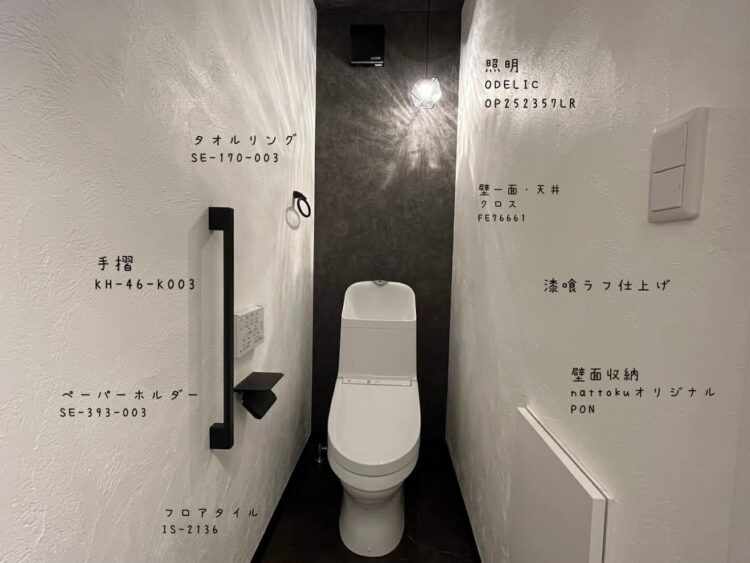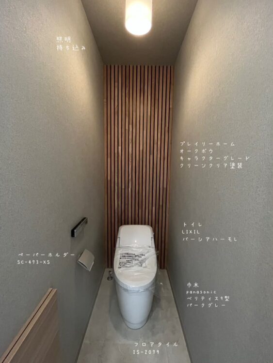 こちらのトイレは最近流行りのグレージュの色味で統一した
