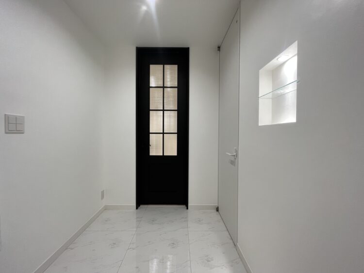 ニッチも木目ではなく、ガラスを使うことで雰囲気を壊すことなく