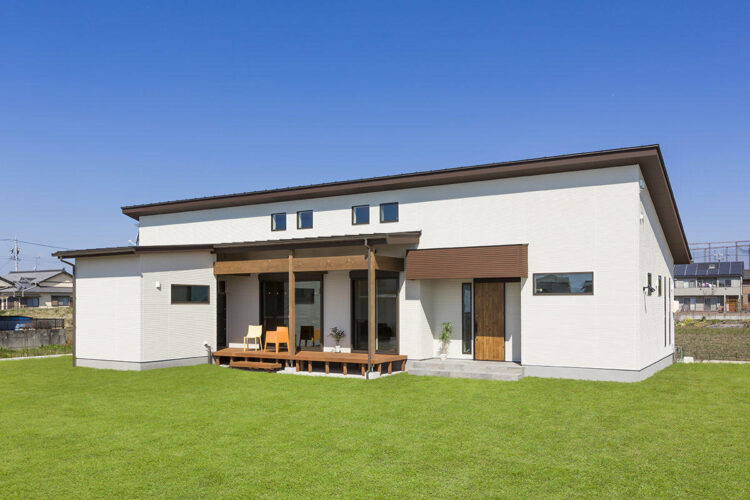 ウッドデッキで過ごす時間が心地良い、優しい表情の平屋