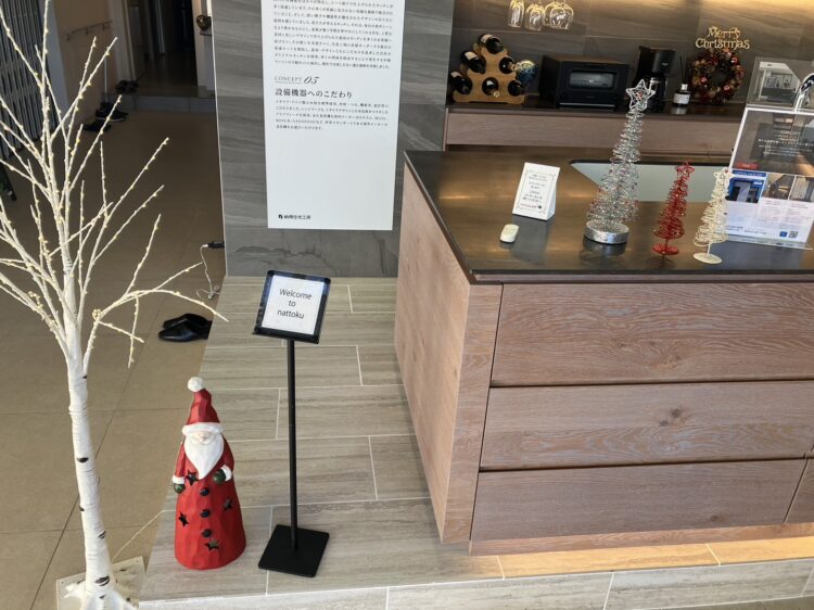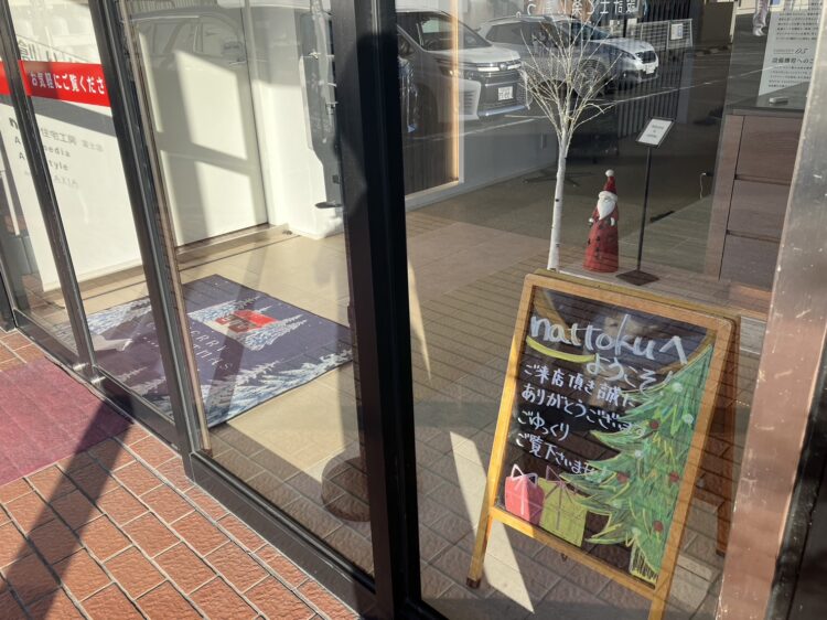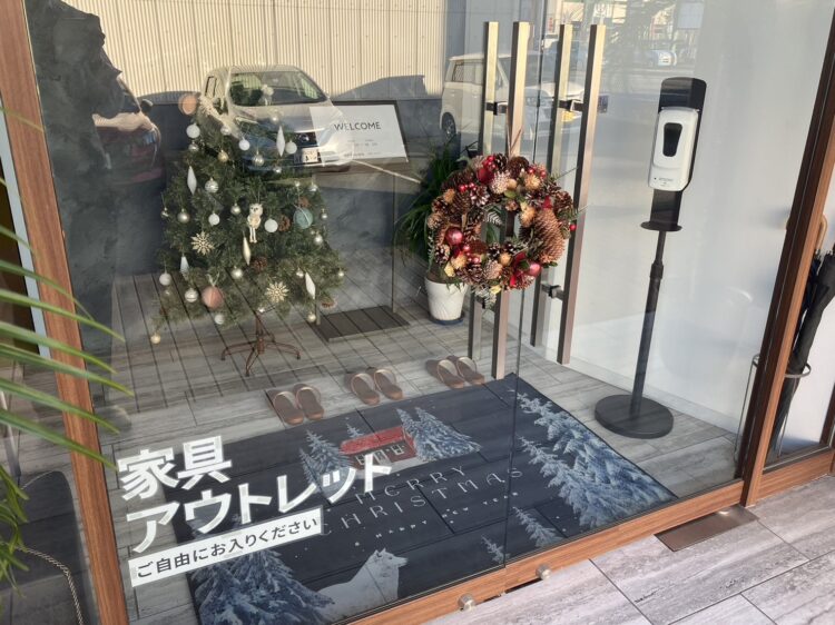 入口ですが店舗もBASEもクリスマスのマットがひいてあります
