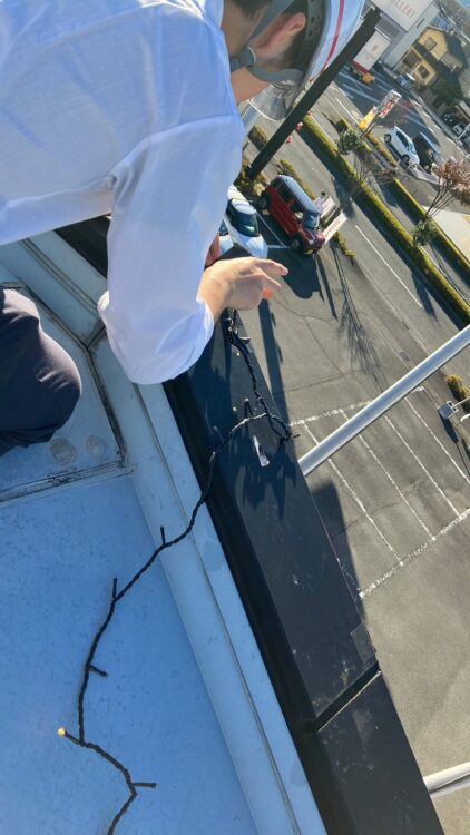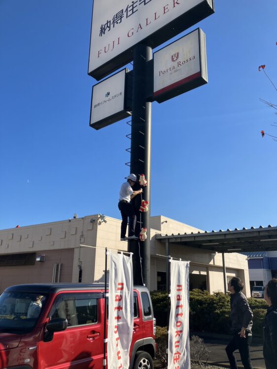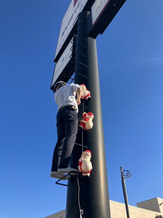 このサンタさんは設計の鹿児島が身を張ってつけてくれました