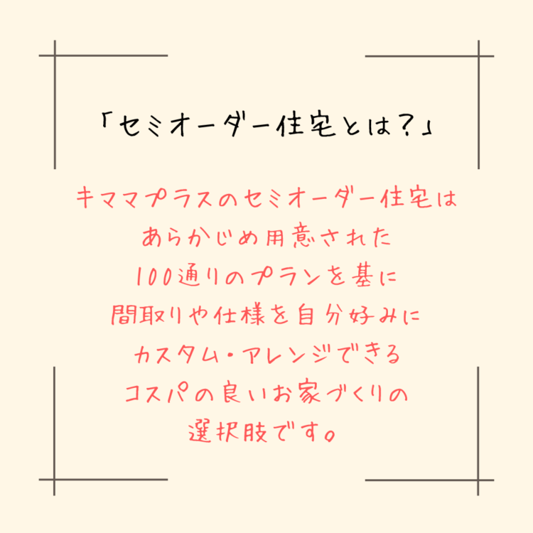 今回は、簡単にキママプラスのセミオーダー型住宅を説明します。