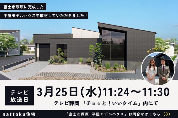 今回は、テレビ静岡さんのチョッと!いいタイムで富士市厚原の平屋モデルハウスをご紹介いたします!