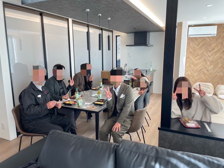 上棟の時にはみんなでお昼にすることもございますがお引き渡し時には初めてです!!!!