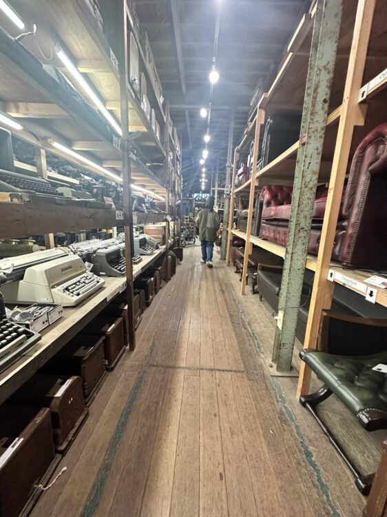 倉庫になっていてとても広く、大きな家具から小さなボタンや金具などの部材まで置いてあり、隅から隅まで見てしまいました…