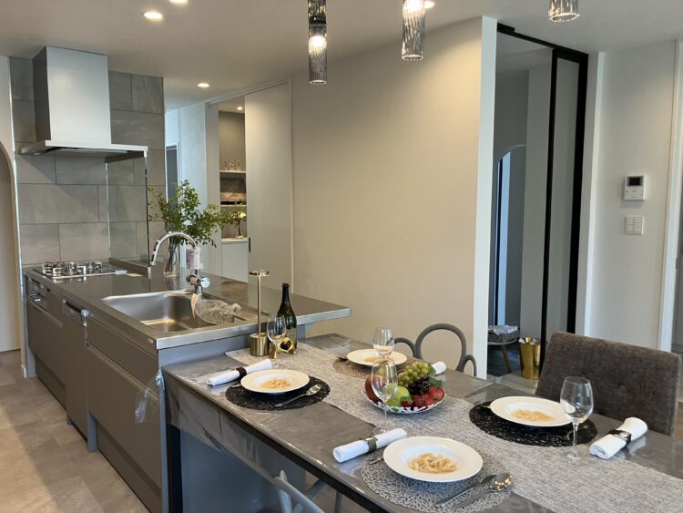 また、ダイニングとキッチンの壁の一部には、タイルが張ってあるのですが、、、