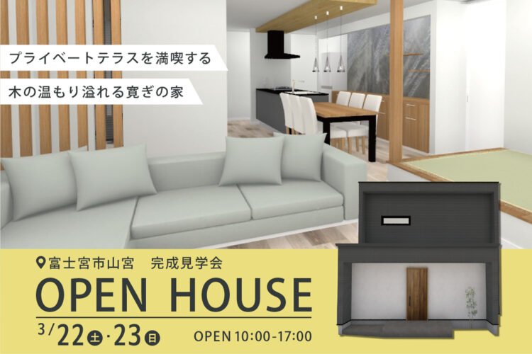 完成見学会のご案内:静岡市清水区草ヶ谷と富士宮市山宮。