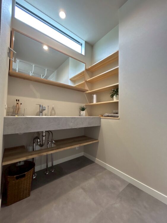 ・玄関ホールから続く造作洗面とうんていスペース