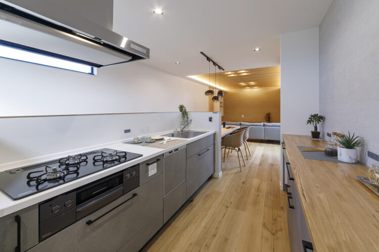キッチンに立った時に、木に包まれたリビングを見ながら料理ができる毎日。