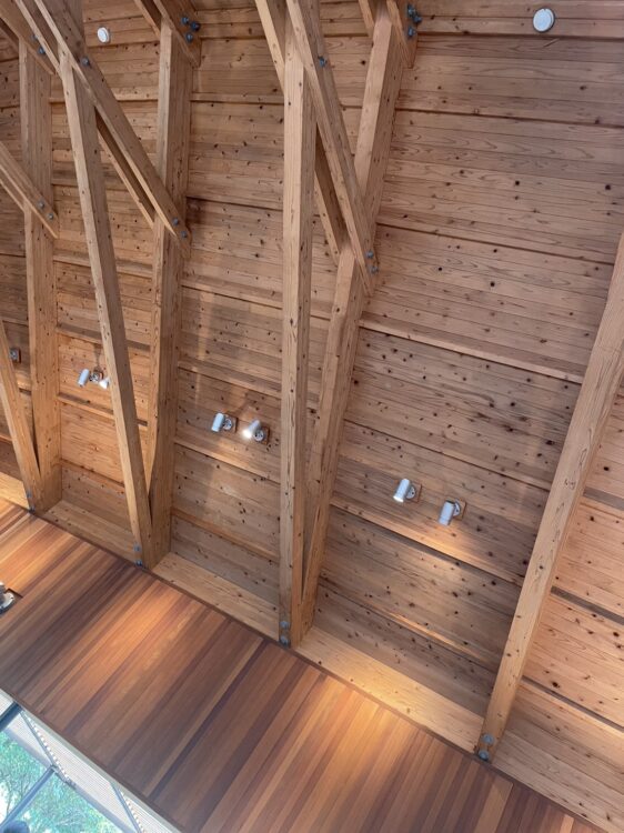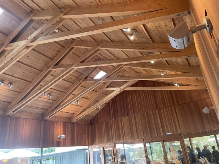 内側に貼られている木は同じ種類なのですが、部位などによって色に違いがありそれを活かした内観もとても素敵でした