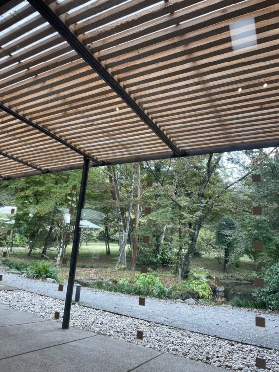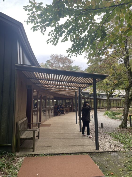 森林の中にポツンとあるカフェですが、建物自体が曲線を描いており、また木もふんだんに使われておりとても落ち着く空間でした