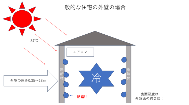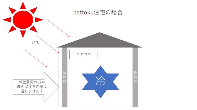 私たちは外壁材の厚みが37㎜で表面の熱を通しません。