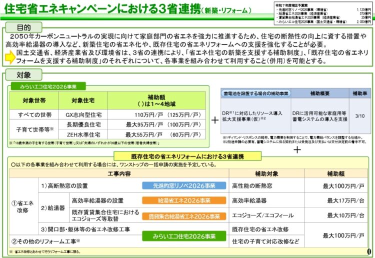では、新築についての補助金「みらいエコ住宅2026事業」についてです!