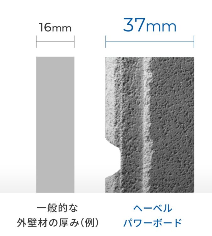 へーベルパワーボードは厚さ37mmのALC(軽量気泡コンクリート)素材でできており、非常に高い耐火性を持っています。