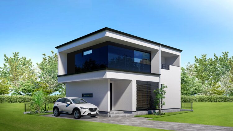鏡面外壁材を使用し直線的でシンプルなフォルムがモダンで都会感を演出した春日井モデルハウス