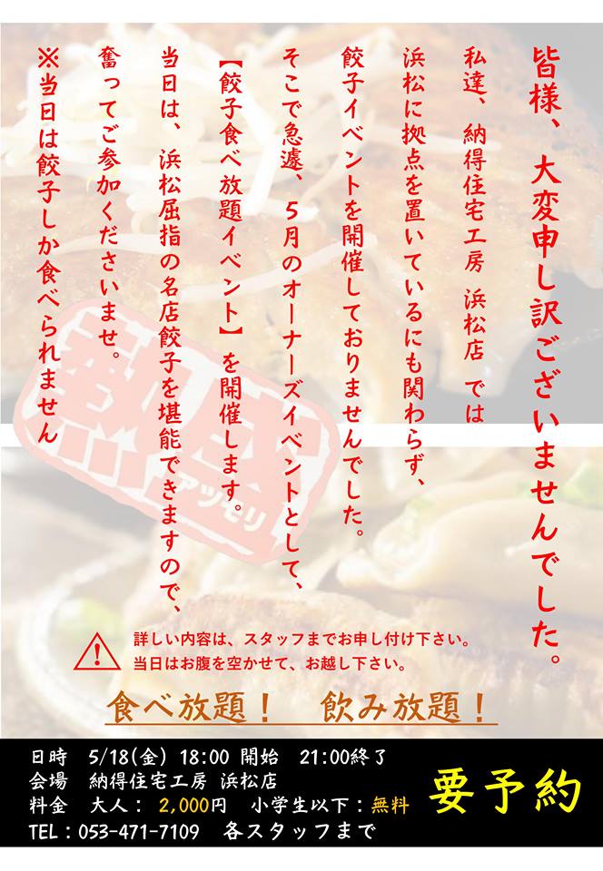 住宅会社なのに浜松餃子イベント開催!!