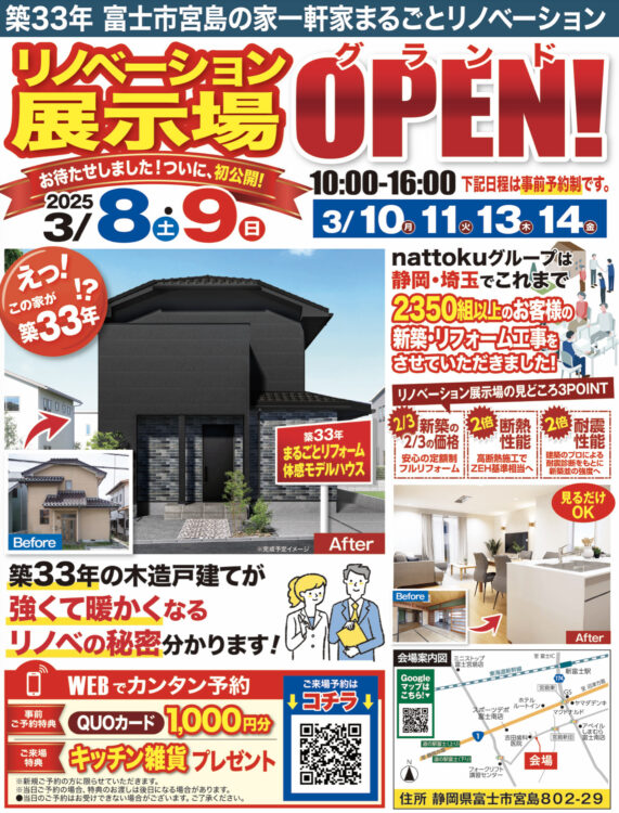 今週末、富士市宮島にリノベ展示場がグランドオープンいたします。