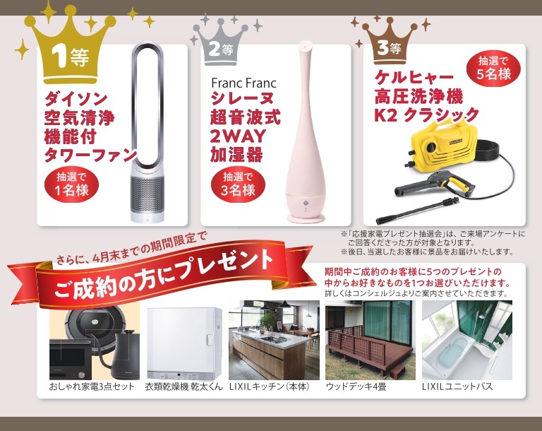 さらに4月末までにご成約いただきますと、暮らしを充実させるアイテムを1つプレゼント♪