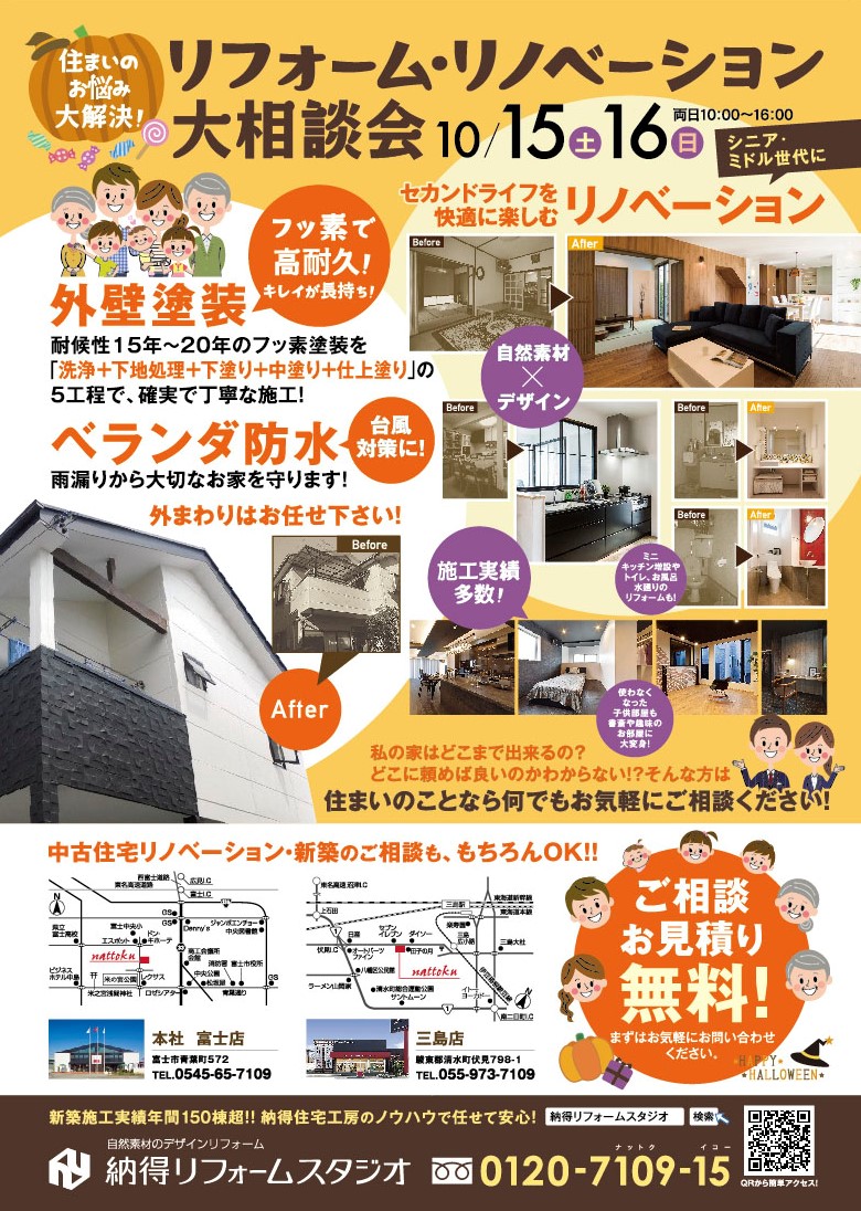 10/15(土)16(日)富士店・三島店にてリフォーム・リノベーション大相談会開催!