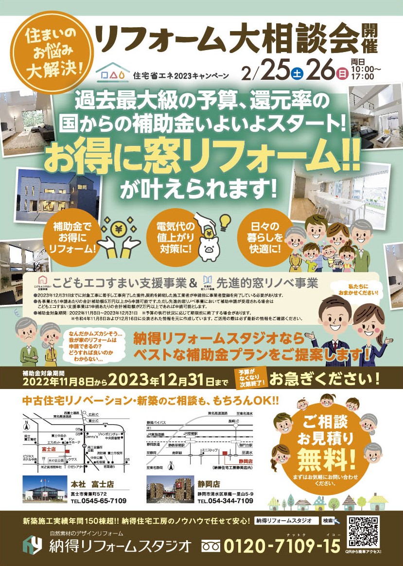 2/25(土)26(日)富士店・静岡店にてリフォーム・リノベーション大相談会を開催!