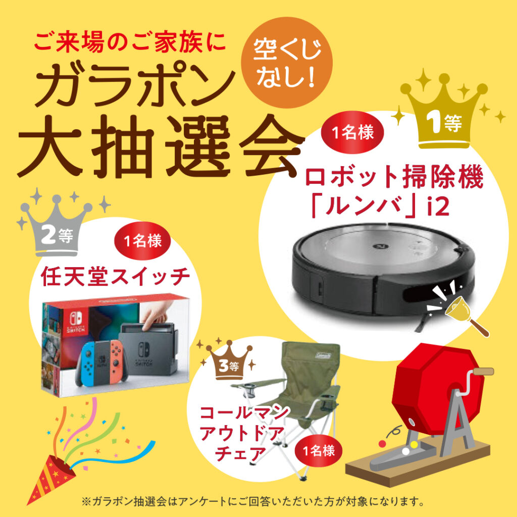 アンケートにお答えいただいたご来場のご家族様を対象にガラポン抽選会を開催!