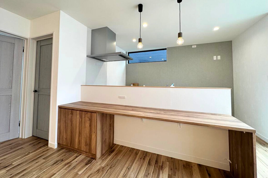ダイニングテーブルは設けず、お料理しながらキッチンカウンターでご飯を食べるスタイルに。