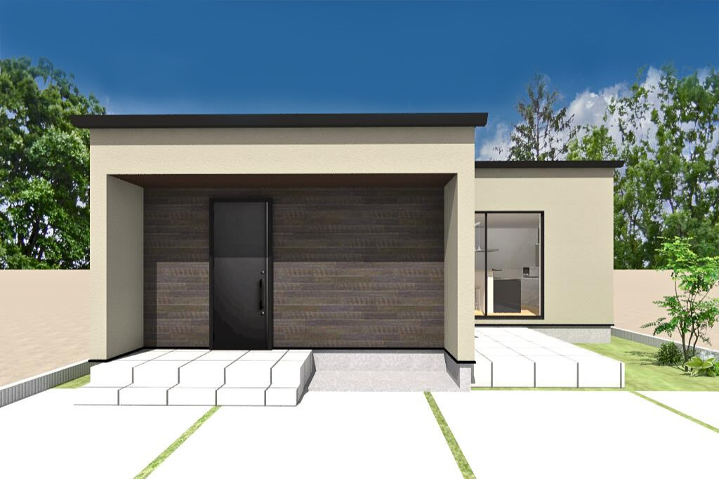 優しいお施主様の人柄を表すような “落ち着いたグレージュ” をベースに、少しかっこいいウォルナットを玄関周りのアクセントに。ゆとりある広い玄関ポーチは家族をあたたかく出迎えくれます。