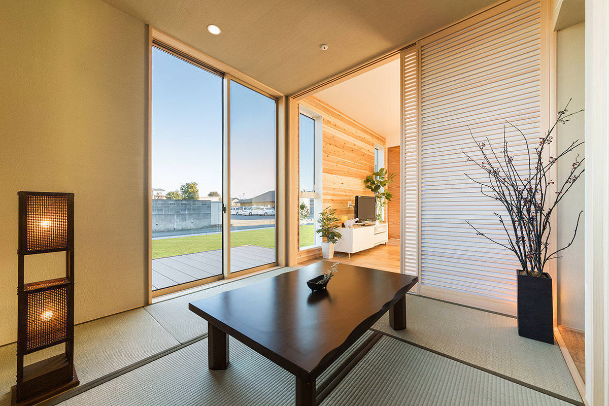 玄関とLDK、双方から出入りできる和室は来客時やゲストの宿泊にも便利。畳の香りをシンプルに味わえる和の趣にもこだわりました。