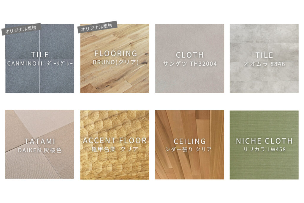 日々の暮らしの中で肌が直接触れることの多い床や壁。木・畳・石など、素材そのものから感じられる質感は、知らず知らずのうちに五感を刺激します。水周りには機能性を備えたタイルやクロスを選択しています。