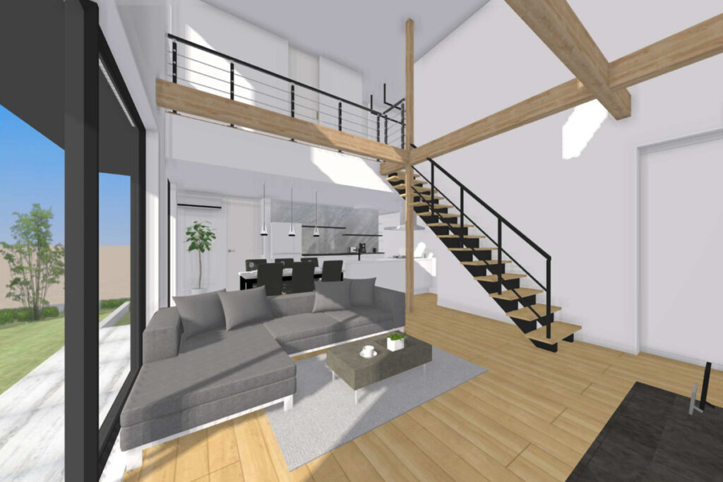 広々とした吹き抜け空間が広がるLDK