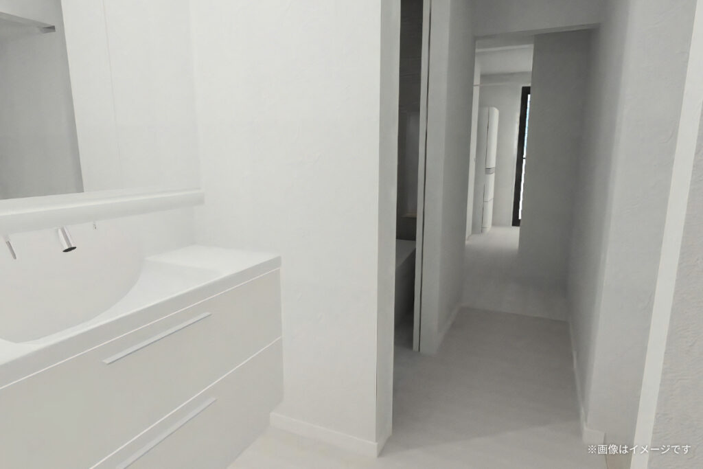 洗面、ウォークインクローゼット、キッチンパントリーへと続く、買い物帰りにもうれしい回遊動線。