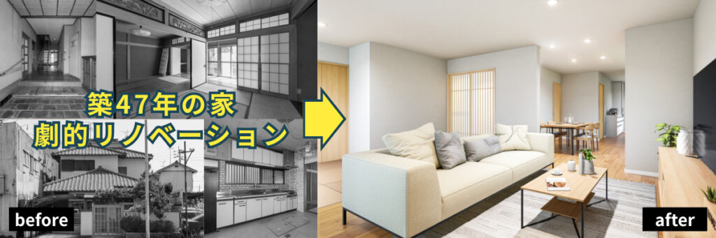 劇的なビフォーアフターをご体感いただける築47年の戸建リノベーション。