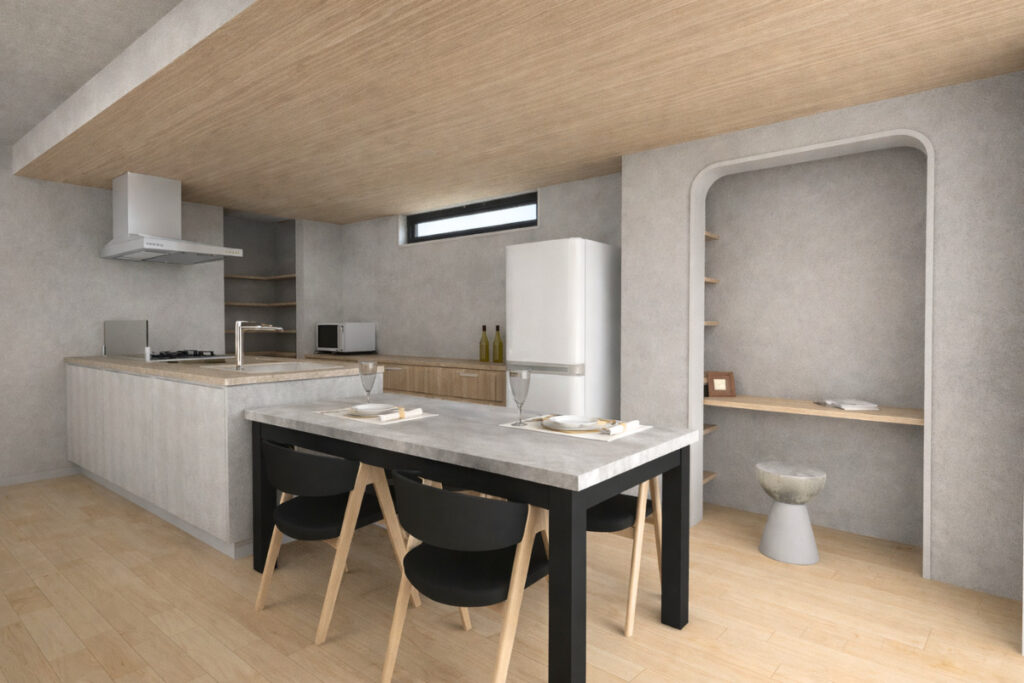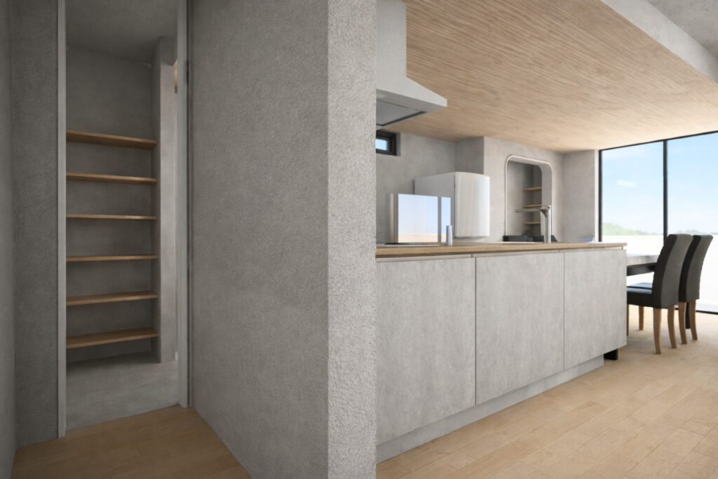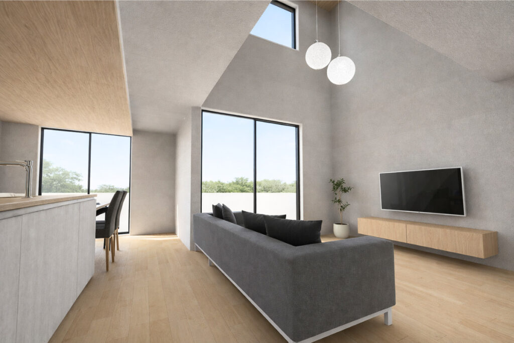 ALCパワーボードを使いながら、塗り壁風に見せるフラメジ工法を採用し、性能にもデザインにも拘りました。