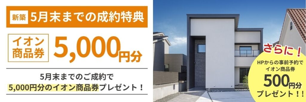 5月末までの新築の家づくりのご成約で、「イオン商品券5,000円分」プレゼント!