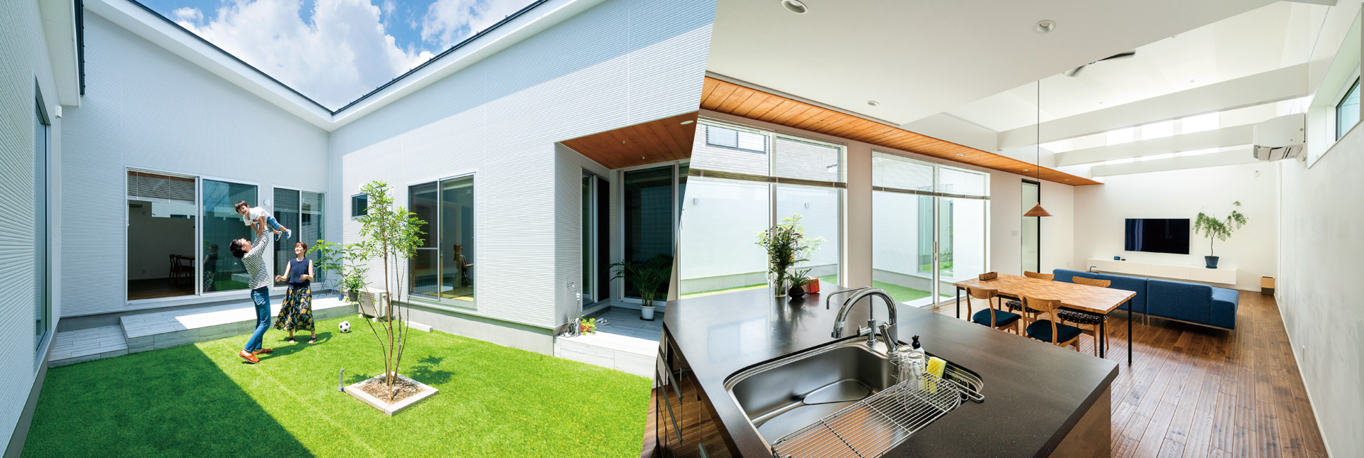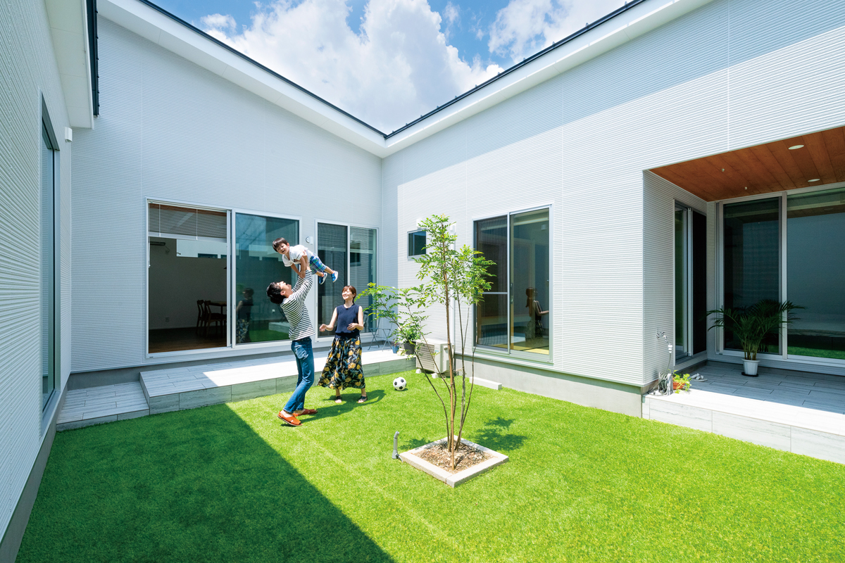 家族が揃う空間を優先するのであれば、平屋の中央にインナーパティを設けるのがおすすめです。