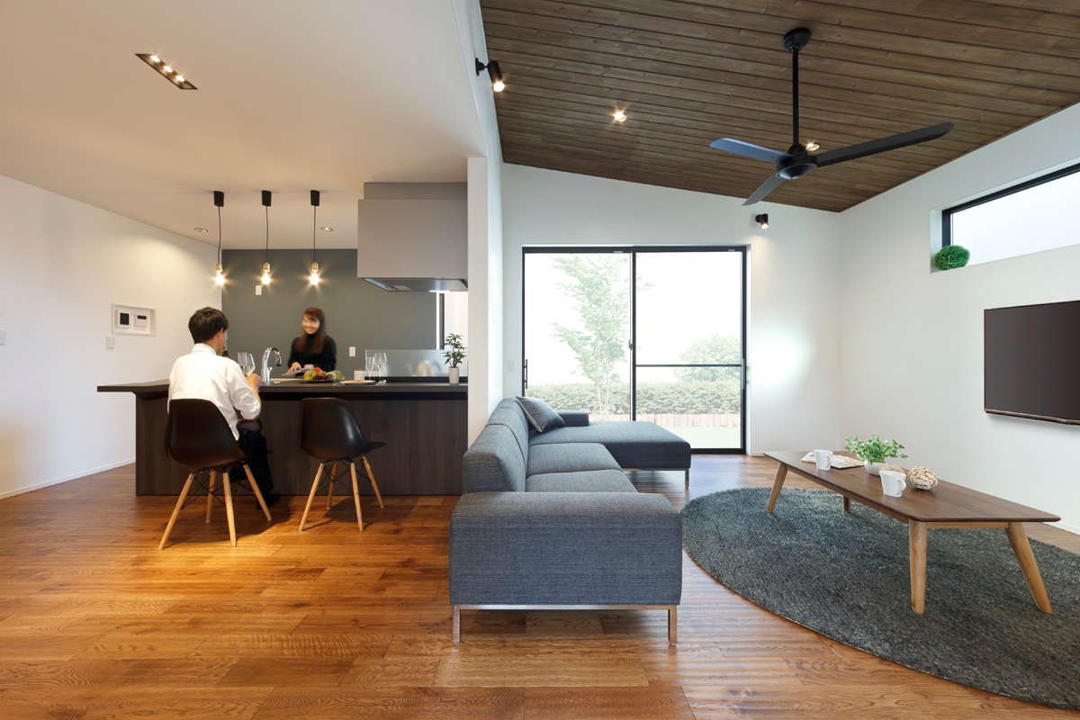 「新築してから外に出かけなくなったね」と声を揃えてほほ笑むおふたり。息子さんと3人で、のびのび平屋ライフを満喫されています。