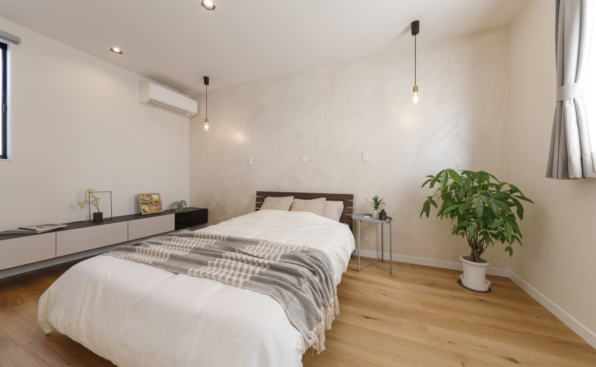 漆喰は石灰石を主原料とした壁材料で、耐火性、耐久性が強く、吸湿、放湿性にすぐれており、家の中の空気を浄化してくれます。のびのびと深呼吸ができる自然素材の空間で、季節を問わず、心地よく快適に過ごしてください。