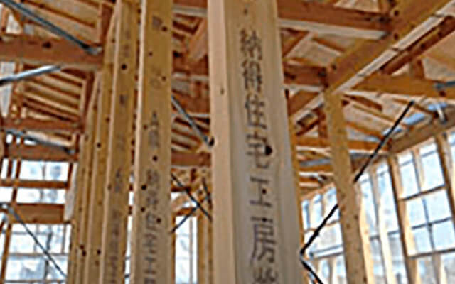 私たちが使う柱はすべて無垢の檜(ひのき)です。檜を使う理由は複数ありますが、一番の理由はその丈夫さです。1,300年の時を超えて今なお健在する寺院にも檜が使われています。