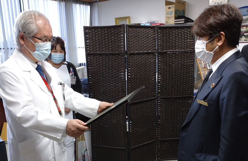 1月20日に同医院で行われた拝受式にて、富士市立中央病院 院長 柏木秀幸様より、弊社代表久保が感謝状を拝受しました。