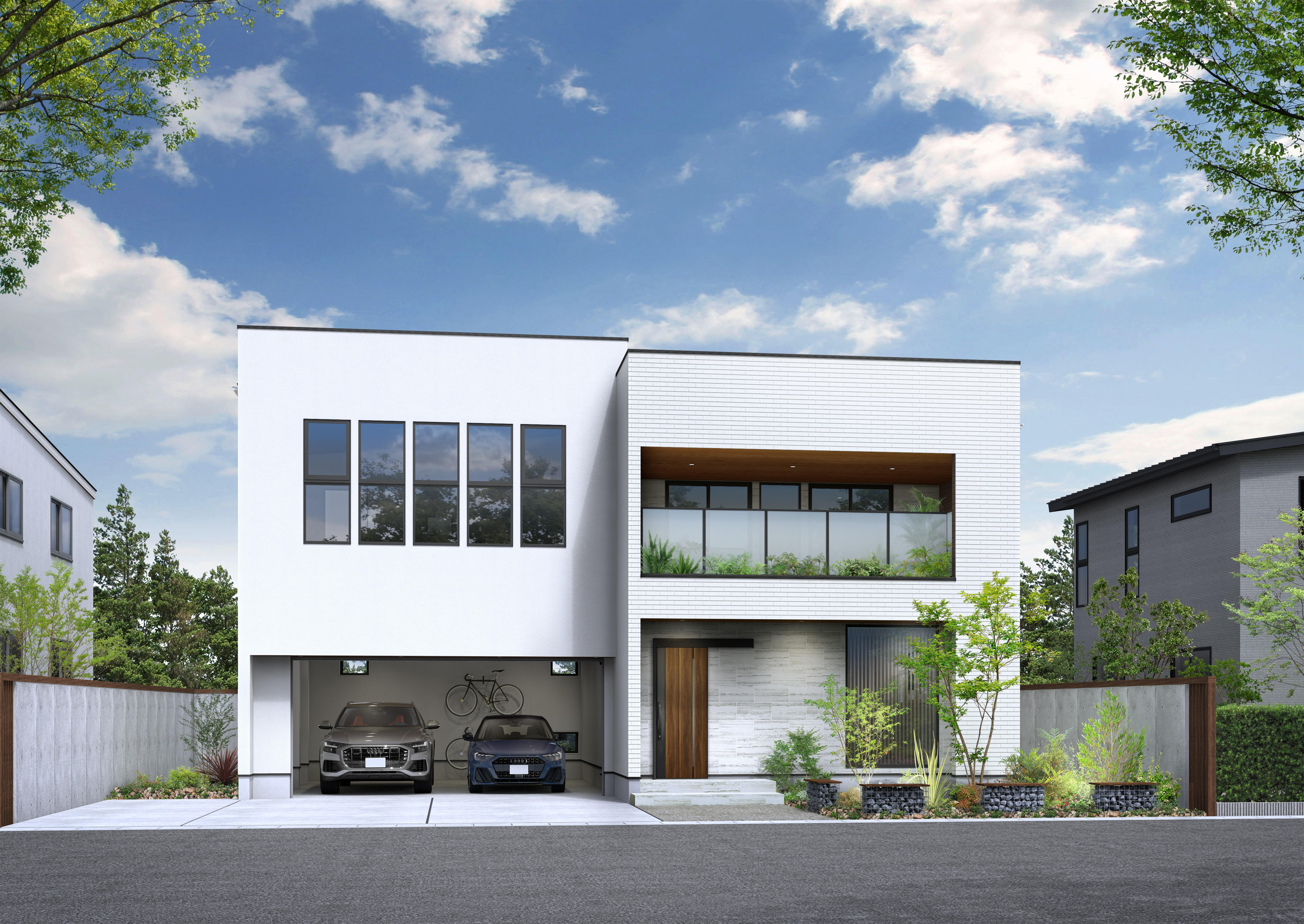 今回の浜松ZEHモデルハウスは、納得住宅工房のデザイン性と機能性に優れた良質な建物に、鈴与商事がエネルギー計算を行い、省エネ性・防災性を高める最適な機器を組み合せた「ZEHパッケージ(太陽光発電システム、蓄電システム、ハイブリッド給湯器、高性能エアコン、HEMS※2)」を導入しました。加えて、より快適でスマートな暮らしを実現する最新のガス機器や、IoT機器、電気自動車をご家庭の電源として利用する「VtoH※3」も導入しています。