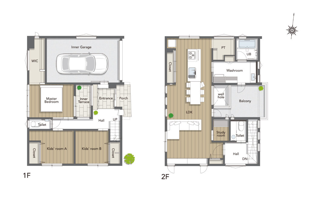 (インナーガレージ/2階リビング/ランドリールーム/書斎)